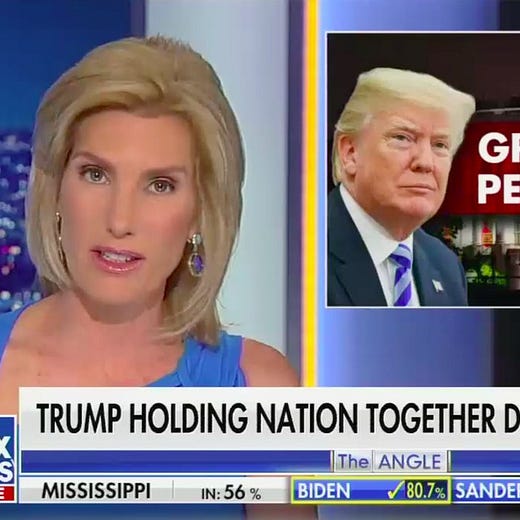 The brainchild of GOP Goebbels-cum-paranoid sex creep Roger Ailes, Fox News has always been a Reeses’ Peanut Butter Cup of conservative political messaging and reactionary cultural grievance, devoted to fair and balanced consideration of the important national questions that liberals don’t want you to ask, such as What About That One New Black Panther Guy At The Polls? and Who, Exactly, In Hillary Clinton’s Presidential Campaign Murdered Seth Rich? The network is where you can find Rudy Giuliani wishing for Clinton’s beheading. Where Sean Hannity promulgates non-existent deep state conspiracies and been making unsubstantiated voter fraud claims about Democrats in the Philadelphia area since … 2016. Where Laura Ingraham, not a virologist, lets viewers know that that the “biggest lie is, is that restaurants are spreaders of COVID.” Where Jesse Waters is impressed by the “great stuff” that QAnon is uncovering. Where Tucker Carlson, a self-proclaimed “freelance thinker” who (successfully!) fought off a defamation suit by arguing that his own viewers know he’s peddling malarkey, makes this face, a lot. It was the Triple-A farm club for the griftastic Trump Administration, and remains home to an entire cinematic universe of ghouls and goombas who in another time and place would be getting their limbs severed for looking at Obi-Wan Kenobi the wrong way, ranging from non-economist economist Larry Kudlow to Facebook power user Dan Bongino to—wait, is that Geraldo’s music? By God, it is!